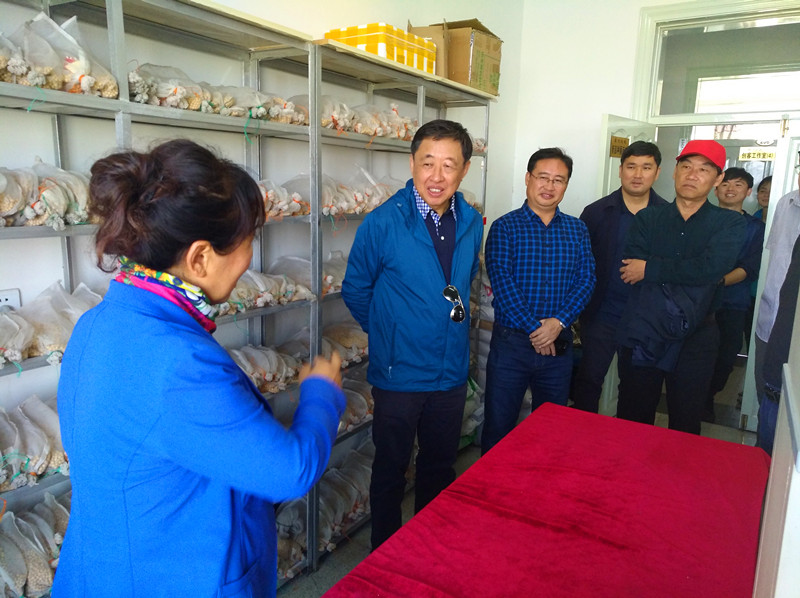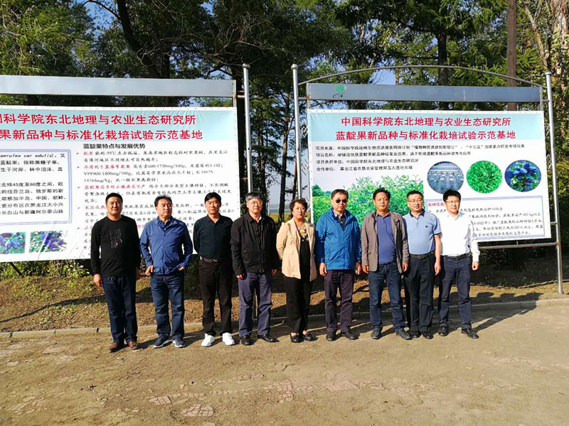 在北安農管局藍靛果新品種與標準化栽培試驗示范基地,何巖副秘書長聽取了國家“十三五”重點研發項目執行和藍靛果品種培育和引進及示范基地建設情況介紹,詳細詢問了藍靛果種植、藍靛果與大豆間作栽培模式及產品開發等相關問題。