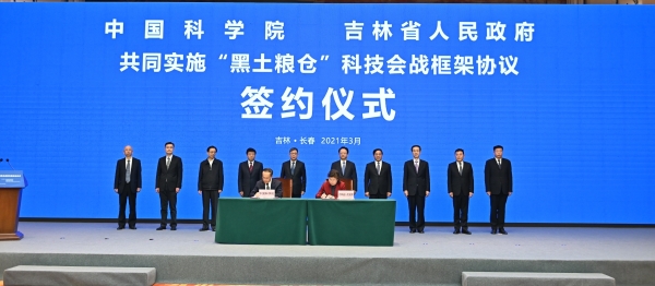 3月29日,中國(guó)科學(xué)院和吉林省人民政府在長(zhǎng)春共同啟動(dòng)“黑土糧倉(cāng)”科技會(huì)戰(zhàn)。中科院院長(zhǎng)、黨組書記侯建國(guó),吉林省委書記景俊海,吉林省委副書記、省長(zhǎng)韓俊等出席活動(dòng)。中科院副院長(zhǎng)張濤和吉林省副省長(zhǎng)李悅代表雙方簽署了科技會(huì)戰(zhàn)框架協(xié)議。
