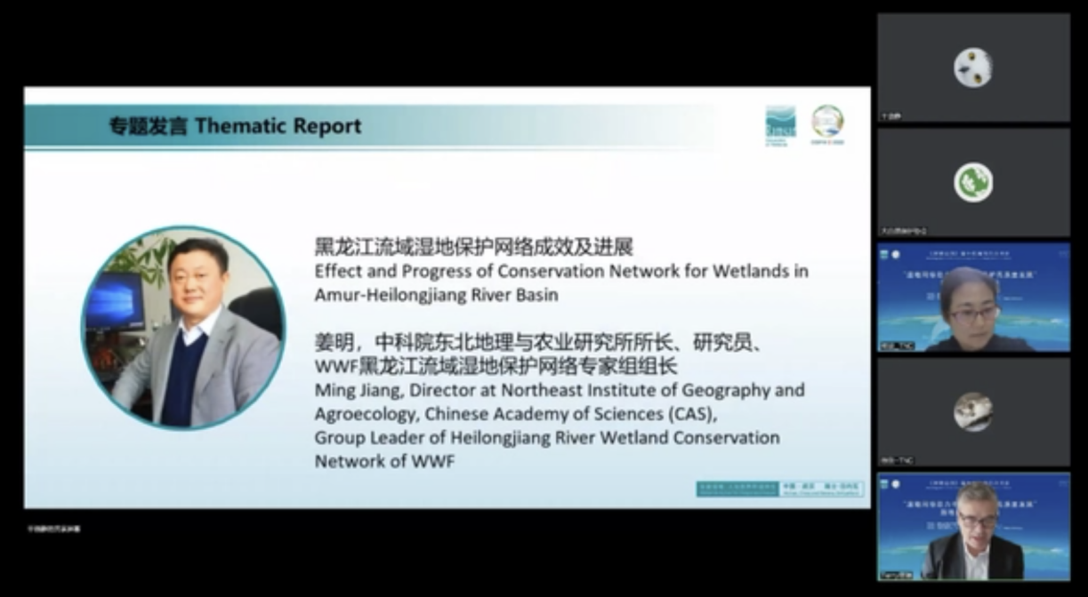 11月9日,姜明作為黑龍江流域濕地保護網絡專家組組長,應邀在“濕地保護網絡論壇”邊會上,做了題為“黑龍江流域濕地保護網絡成效及進展”的發言,介紹了黑龍江流域濕地分布,指出濕地存在的問題和未來潛在變化,表概述了黑龍江流域濕地網絡于2019年成立后,協調統籌多方力量共同開展保護行動,采取強有力的措施保護濕地,穩步開展“雙碳”行動,積極構建中國北方生態安全屏障,在濕地資源保護、維護生態安全中發揮了關鍵作用。在未來會加強科技投入,建立濕地補償機制、推動國際合作、開展區域內外項目合作等。
