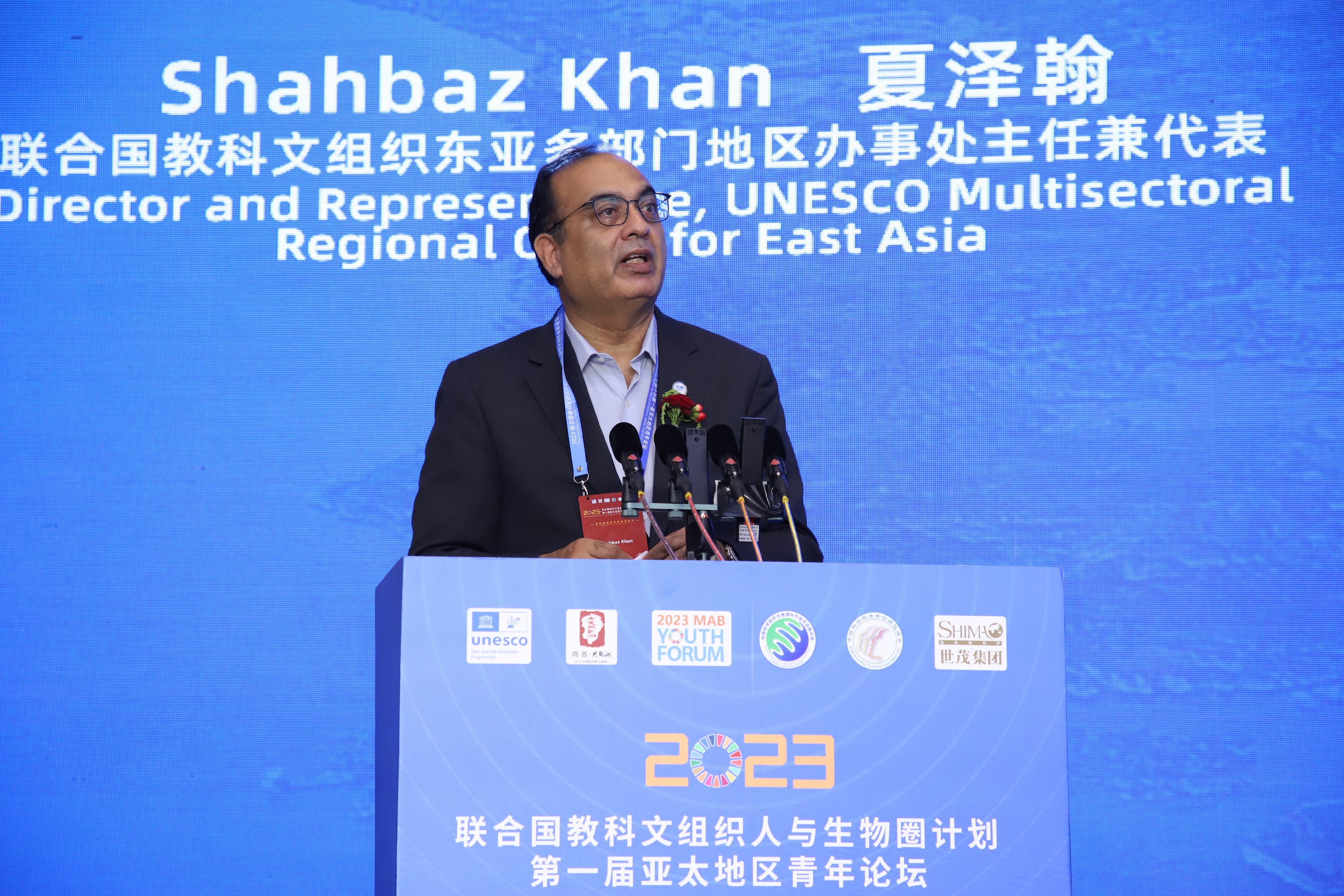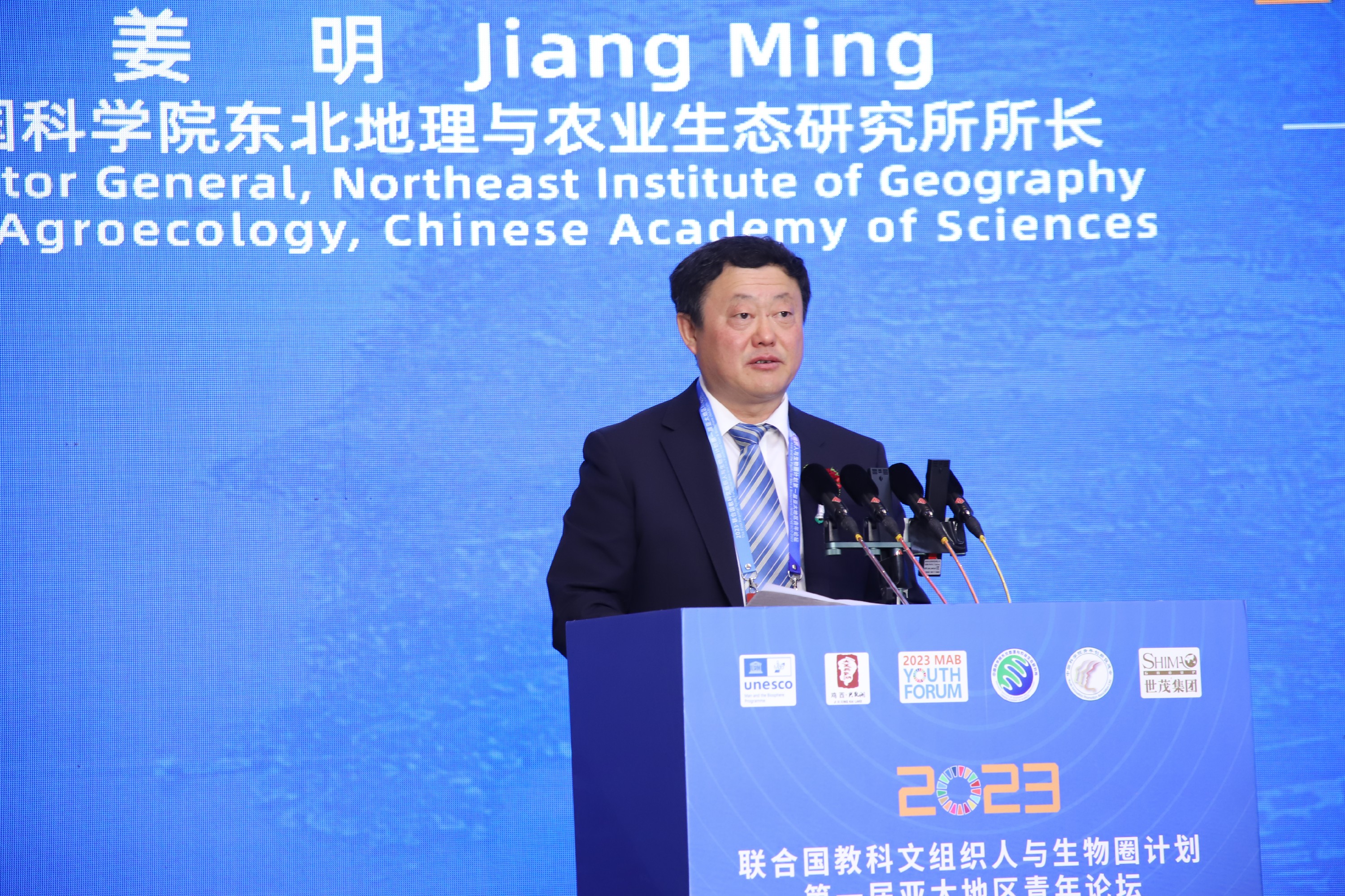 論壇開幕式上,教科文組織東亞多部門地區辦事處主任、駐華代表Shahbaz Khan、國家自然科學基金委員會地球科學部一處(地理科學)處長熊巨華、中國人與生物圈國家委員會秘書先義杰、“一帶一路”國際科學組織聯盟秘書處執行主任曹京華對論壇的隆重召開表達了誠摯的祝賀,雞西市人民政府市長孫成坤、中國科學院東北地理與農業生態研究所所長姜明分別代表會議主辦單位和承辦單位向蒞臨此次論壇的各位領導、院士和遠道而來的國內外專家表示了熱烈的歡迎和衷心的感謝。開幕式由聯合國教科文組織駐華代表處科學項目官員Sugiura Ai主持。