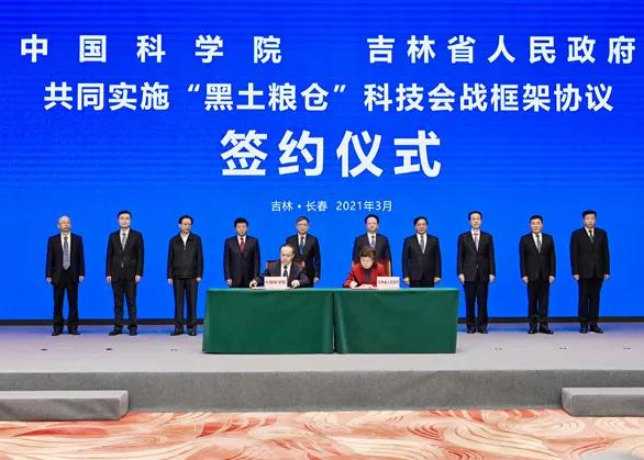 3月29日,中國科學(xué)院和吉林省人民政府在長春共同啟動“黑土糧倉”科技會戰(zhàn)。中科院院長、黨組書記侯建國,吉林省委書記景俊海,吉林省委副書記、省長韓俊等出席活動。中科院副院長張濤和吉林省副省長李悅代表雙方簽署了科技會戰(zhàn)框架協(xié)議。