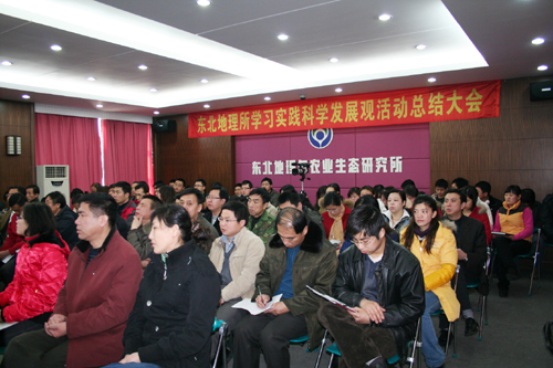 2月27日下午,東北地理所召開了學習實踐科學發展觀活動總結大會,這標志著遵照中央的統一部署,按照吉林省委、黑龍江省委及中科院黨組的要求,歷時近5個月的集中學習實踐活動圓滿結束。所領導班子成員、全體在職黨員和離退休黨支部書記計121人參加了會議,長春分院分黨組書記甘建國出席會議。大會由東北地理所黨委副書記、學習實踐活動領導小組副組長馬福安主持。 東北地理所黨委書記、學習實踐活動領導小組組長胡乃澤代表所領導班子對學習實踐活動進行回顧總結。他在總結中指出:東北地理所的學習實踐活動認真扎實,突出實踐特色,較好地完成了學習調研、分析檢查、整改落實三個階段11個環節的工作。學習實踐過程中,深刻理解科學發展觀的精神實質,重點放在查找工作中不符合科學發展觀的問題和研究整改措施上,及時解決了一些群眾關心和迫切需要解決的問題,取得了一批機制體制創新的階段性成果。在涉及研究所科學發展的一些重大問題上形成了共識,目標和思路更加明確。同時,他還實事求是地分析評價了學習實踐科學發展觀活動開展過程中存在的不足。 最后,胡乃澤書記強調:雖然學習實踐科學發展觀活動即將告一段落,但是貫徹落實科學發展觀卻是一項長期的任務,是無止境的,不能有絲毫的怠懈。我們一定要把學習實踐活動激發的熱情轉化為促進科學發展的強大動力,把學習實踐活動的成果運用到推動開創研究所科技創新新局面的實踐中去,為建設和諧奮進的東北地理與農業生態研究所而努力奮斗! 會上,對此次學習實踐科學發展觀活動進行了群眾滿意度測評。到會人員121人,發出測評票121張,收回測評票121張,其中“滿意”100票,占82.6%;“比較滿意”為21票,占17.4%。