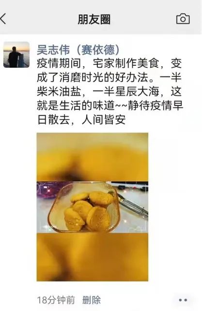 吳志偉:疫情期間,宅家與妻子制作美食,增進情感,也是消磨時光的好辦法。