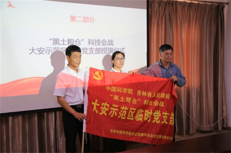 舉行了授旗儀式,蘇陽作動員講話。他指出,開展“黑土會戰(zhàn)”是中國科學院和吉林省人民政府面向國家需求,立足國家糧食安全壓艙石戰(zhàn)略,深入貫徹落實習近平總書記“把黑土地用好養(yǎng)好”的重要指示精神的具體實踐。攻堅克難是我們黨的優(yōu)良傳統(tǒng),也是傳家之寶,要讓黨旗在示范區(qū)一線高高飄揚。他強調,為充分發(fā)揮“黑土會戰(zhàn)”前沿陣地的戰(zhàn)斗堡壘作用,所黨委第一時間在海倫、大安、三江、長春等四個示范區(qū)成立了臨時黨支部,實現(xiàn)的黨的組織和黨的工作全覆蓋,這是在科技會戰(zhàn)中全面加強黨的領導的重要內容。希望大家“不忘初心、牢記使命”,腳踏實地,在急難險重任務中沖鋒在前,以銳意進取的姿態(tài),投入到創(chuàng)新科技、服務國家、造福人民的偉大斗爭中去,傳承興土精神,為用好養(yǎng)好黑土地做出國家戰(zhàn)略科技力量應有的貢獻,不辱使命!