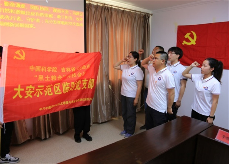 馬七軍做總結講話。他強調,建立示范區(qū)臨時黨支部是推進“黑土會戰(zhàn)”的實際需要,也是強化組織、凝聚力量,砥礪基層戰(zhàn)斗堡壘的必要舉措。今天的授旗儀式,既是號召廣大黨員干部積極投身“黑土會戰(zhàn)”的集結令,也是讓黨旗高高飄揚在科技會戰(zhàn)主戰(zhàn)場的沖鋒號。希望示范區(qū)臨時黨支部充分發(fā)揮好戰(zhàn)斗堡壘作用,真正將黨的政治優(yōu)勢轉化為堅決打贏“黑土會戰(zhàn)”的組織優(yōu)勢;希望廣大黨員干部能在“黑土會戰(zhàn)”中做到沖鋒在前,吃苦在前,擔當在前,真正做到手中有黨旗,心中有信仰,工作有方向,切實將黨的引領作用貫穿“黑土會戰(zhàn)”工作始終;希望長期扎根示范區(qū)一線的廣大科技工作者們,能深入學習老一輩科學家的治學精神,繼續(xù)追隨劉興土院士的足跡,心系“國家事”、肩扛“國家責”,在推動科技自立自強的事業(yè)中揮灑汗水,以昂揚的斗志、飽滿的精神投身“黑土會戰(zhàn)”各項任務中,以優(yōu)異的成績迎接黨的二十大勝利召開!