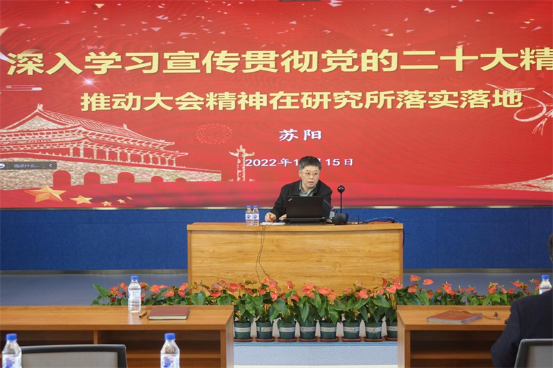 會(huì)上,蘇陽介紹了中國(guó)共產(chǎn)黨第二十次全國(guó)代表大會(huì)的概況,并結(jié)合本所實(shí)際工作從重要意義、偉大成就、目標(biāo)任務(wù)、謀劃部署、責(zé)任使命5個(gè)方面對(duì)黨的二十大精神進(jìn)行了詳細(xì)解讀。對(duì)標(biāo)黨中央學(xué)習(xí)要求、院黨組學(xué)習(xí)部署,對(duì)本所學(xué)習(xí)宣傳貫徹黨的二十大精神進(jìn)行了系統(tǒng)部署。