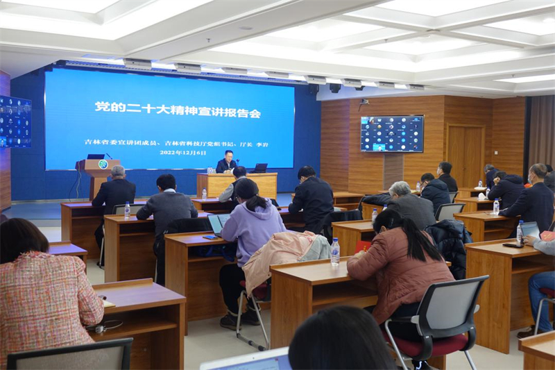 12月6日,吉林省委宣講團成員、省科技廳黨組書記、廳長李巖通過線上、線下相結合的形式,向東北地理所職工、研究生近300人宣講黨的二十大精神。專題輔導報告會由所長姜明主持。