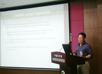 耿曉源主任首先做了題為《Geospatial data integration and decision making: crop yield modeling, drought monitoring, and agricultural water management》的報(bào)告,整個(gè)報(bào)告分為六個(gè)部分:加拿大土壤信息系統(tǒng)的概況、核心的問(wèn)題和商業(yè)需求、研究的目的、地理空間數(shù)據(jù)、主要產(chǎn)出物、進(jìn)一步研究計(jì)劃等。他以加拿大作物產(chǎn)量預(yù)測(cè)模型、干旱預(yù)測(cè)和農(nóng)業(yè)用水管理為例,對(duì)地理空間數(shù)據(jù)整合的相關(guān)研究和技術(shù)作了詳細(xì)講解,并對(duì)其如何更好地服務(wù)于決策過(guò)程進(jìn)行了探討。