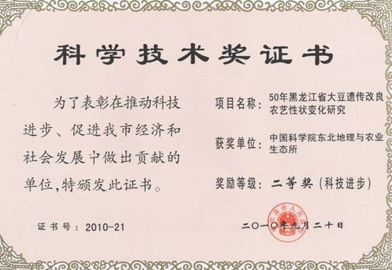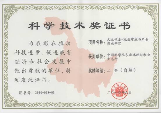 近日,我所主持的“大豆根系-冠層建成與產(chǎn)量形成研究”、“50年黑龍江省大豆遺傳改良農(nóng)藝性狀變化研究”兩個項目分獲黑龍江省自然二等獎和哈爾濱市科技進步二等獎。