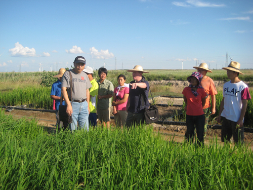8月16日,Grattan教授前往大安堿地生態(tài)試驗(yàn)站進(jìn)行野外考察。王志春研究員等大安站科研人員及研究生分別向Grattan教授詳細(xì)介紹了大安站田間試驗(yàn)和監(jiān)測(cè)工作。Grattan教授就鹽堿地種稻,施肥定位試驗(yàn),排水試驗(yàn),耕作改良試驗(yàn)及地下水、土壤和氣象監(jiān)測(cè)等,與大家進(jìn)行了充分的交流和研討,并對(duì)鹽堿地農(nóng)業(yè)灌排水管理、耐鹽堿作物種植等方面提出寶貴意見(jiàn)。實(shí)地考察后,由梁正偉研究員主持,Grattan教授在大安站作了題為“Management of saline-sodic drainage water for irrigation: opportunities and challenges”的學(xué)術(shù)報(bào)告,重點(diǎn)介紹了美國(guó)加利福尼亞州土地利用和農(nóng)業(yè)發(fā)展情況,鹽漬土改良與節(jié)水研究,灌溉排水管理和再利用,灌溉水質(zhì)與土壤理化性質(zhì)等,并認(rèn)為鹽堿土改良及農(nóng)業(yè)利用是一項(xiàng)重大課題。Grattan教授表示非常愿意在相關(guān)領(lǐng)域開(kāi)展合作研究。