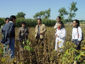 9月24日,劉曉冰副所長、高崇升副處長與課題組成員一道,利用田間取樣、收獲時節,對該項目進行了檢查。在項目實施地巴彥縣松花江鄉,主要布置了崗地、平地、洼地的試驗、示范田,從試驗、示范田中可以明顯可以看出,采用控制重迎茬減產綜合配套技術的豆株高和每株莢數明顯高于對照田,結莢部位也明顯低于對照田。