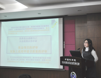 任春穎副研究員做了題為“關于如何撰寫青年科學基金項目申請書的體會”的報告,報告分為基本信息表、申請書正文內容以及個人體會三方面對申請人基金項目文本撰寫的經驗和注意事項進行了詳細而生動的講解。作為國家自然科學基金委評審組專家,呂憲國研究員從會審專家的角度對申請人基金文本撰寫的注意事項、評審專家的關注要點都作了詳細分析。最后,各位專家針對科研人員有關提問進行了答疑。