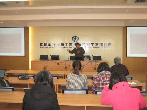 11月1日,在濕地生態(tài)與環(huán)境重點實驗室主任呂憲國研究員的主持下,胥教授作了題為“Challenges and Opportunities for hydrologists in wetland research”的精彩報告。結合近期他在美國開展的濕地水文研究案例,重點介紹了森林采伐濕地水文管理、濱河濕地水質凈化機理與功能、河口濕地萎縮與泥沙沉積、湖泊濕地水質遙感解譯、流域水環(huán)境非點源污染遷移歸宿與BMPs等8個典型案例研究的目的意義、方法與技術手段和重要結論。最后,胥教授與我所科研人員和研究生就濕地水文領域熱點問題進行了交流與討論,希望將來可以進一步加強與我所在濕地水文領域的合作研究。