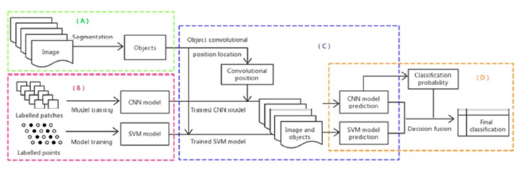 研究人員提出的面向高空間分辨率影像的OSVM-OCNN分類算法,首次在對象級別結合了淺層分類器(SVM)和深層分類器(CNN),捕獲了兩種分類器在影像特征提取方面的優勢。使用高空間分辨率光學和雷達影像對算法進行了驗證,實驗表明相比于基于像元的分類方法,OSVM-OCNN顯著地提高了土地覆被的分類精度,是一種高效率高精度的遙感分類算法。