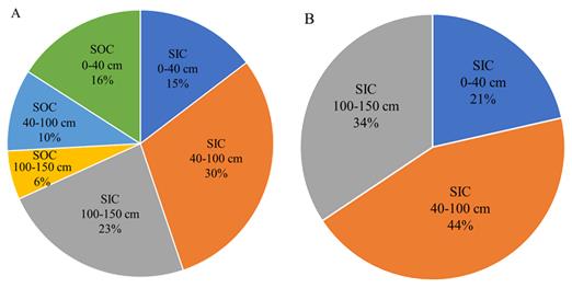 有關(guān)土壤碳儲(chǔ)量估算的研究多數(shù)集中在SOC,但是土壤無機(jī)碳(SIC)對(duì)土壤總碳儲(chǔ)量的貢獻(xiàn)不容忽視,特別是在干旱和半干旱地區(qū)。研究選取以黑鈣土為主要土壤類型的林甸縣作為研究對(duì)象,基于25個(gè)農(nóng)田土壤剖面(0-150cm),揭示了SIC儲(chǔ)量的剖面分布規(guī)律及其影響因素。研究發(fā)現(xiàn),在0-150cm層次,SIC儲(chǔ)量為109.0-331.7 Mg ha-1,平均為259.0 Mg ha-1,約占土壤總碳儲(chǔ)量的68%;其中100-150cm土層的SIC儲(chǔ)量占剖面SIC總儲(chǔ)量的1/3以上。土壤無機(jī)碳與有機(jī)碳的比值(SIC/SOC)介于0.1和8,其中,在0-40 cm,比值小于1;在40-150cm,比值大于1。說明在40cm土層以上,土壤碳的形態(tài)以SOC為主;而在40cm土層以下,SIC是土壤總碳儲(chǔ)量的主要來源。在整個(gè)剖面(0-150cm)中,SIC/SOC與土壤全氮、有效磷和速效鉀呈負(fù)相關(guān)。研究認(rèn)為,在估算土壤碳儲(chǔ)量時(shí),深層土壤無機(jī)碳不可忽視,另外,土壤層次與土壤理化性質(zhì)共同影響不同土壤碳形態(tài)(SIC,SOC)在剖面的分布。