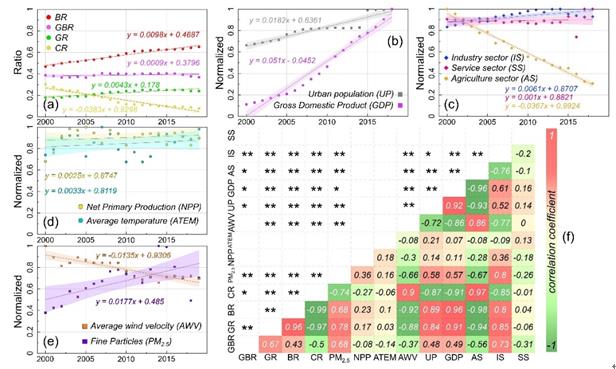 圖4. 土地動態(tài)與社會經(jīng)濟生態(tài)指標的相關關系
