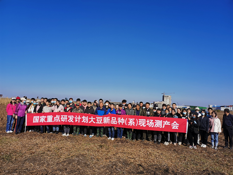 10月7日,東北地理所寒區(qū)大豆育種學(xué)科組組織對在國家重點研發(fā)計劃項目和中科院重點部署項目等項目資助下選育的大豆新品系大面積示范田進行專家測產(chǎn)。現(xiàn)場會在黑龍江省海倫市前進鎮(zhèn)自新村“東生系列”大豆示范田進行。