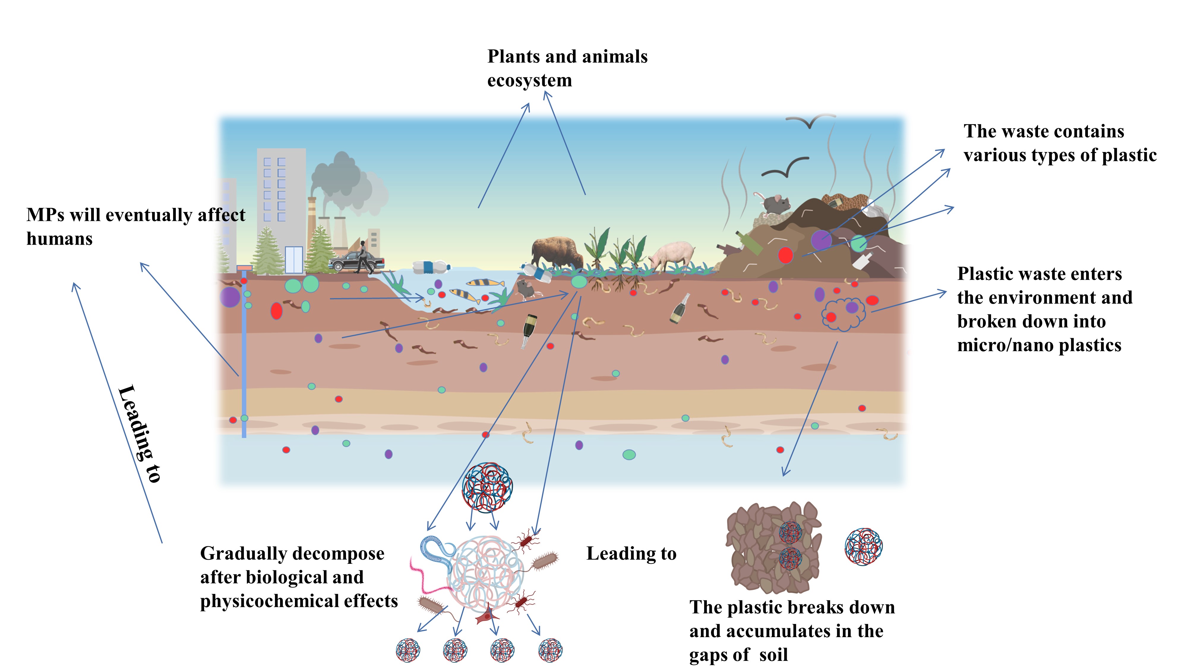 塑料是一種多用途和耐用的材料,已應(yīng)用于廣泛的領(lǐng)域,包括包裝、建筑、汽車制造、電子和農(nóng)業(yè)生產(chǎn)。2004年,英國普利茅斯大學(xué)的湯普森等人在《Science》雜志上發(fā)表了一篇關(guān)于海水和沉積物中的塑料碎片的論文,首次引入了“微塑料”的概念。微塑料是指直徑小于5毫米的塑料碎片和顆粒。事實(shí)上,微塑料的尺寸范圍從幾微米到幾毫米,是塑料顆粒的非均勻混合物,通常難以用肉眼分辨,被稱為“海洋的pm2.5”。目前,我們正處于一個(gè)“塑料”的時(shí)代,塑料制品的產(chǎn)量和浪費(fèi)每年都在增加,包裝領(lǐng)域的需求最多,其次是建筑、汽車、電器、農(nóng)業(yè)等領(lǐng)域。塑料改變了人類的生活方式,但塑料及其衍生物的廣泛使用和不當(dāng)處理對(duì)大氣、海洋和陸地環(huán)境造成了嚴(yán)重的污染。