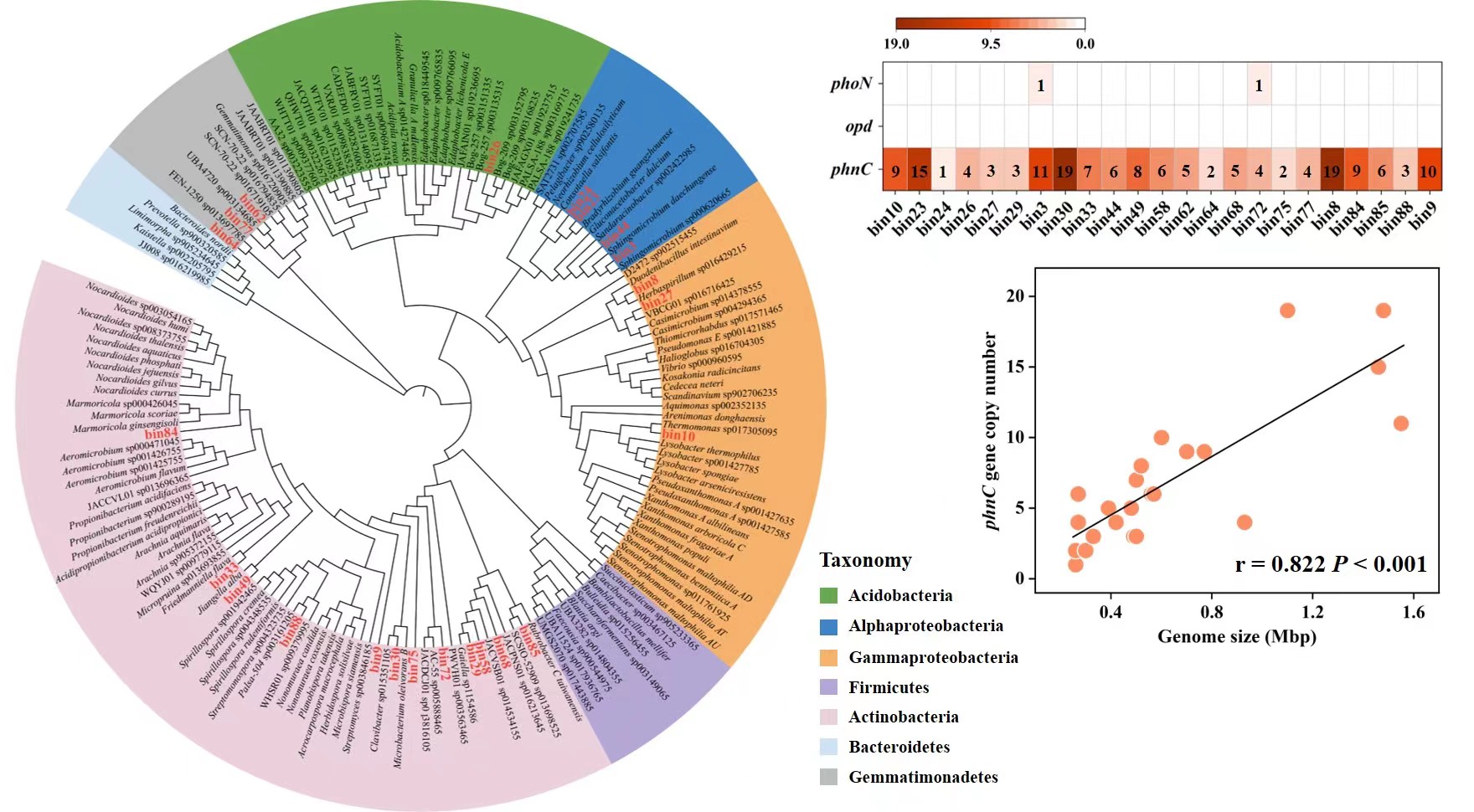 在3個(gè)施肥地點(diǎn)中,有機(jī)肥施用一致性地降低了調(diào)控微生物磷吸收和轉(zhuǎn)運(yùn)的phnC基因豐度,但富集了介導(dǎo)土壤有機(jī)磷礦化的基因(phnP、opd和phoN);此外,有機(jī)肥還增加了調(diào)控土壤無(wú)機(jī)磷溶解的ppa、gcd和pqqC等的基因豐度。特別是黑土中的phnC基因豐度與土壤有效磷含量呈顯著負(fù)相關(guān);且binning獲得的23個(gè)高質(zhì)量基因組全部攜帶該基因,其中Sphingomicrobium被發(fā)現(xiàn)為調(diào)控土壤速效磷含量的潛在指示物種(圖2)。該研究揭示出長(zhǎng)期有機(jī)肥添加促進(jìn)黑土微生物介導(dǎo)的磷養(yǎng)分的有效轉(zhuǎn)化,為做好農(nóng)業(yè)可持續(xù)發(fā)展下的土壤肥料供給提供微生物學(xué)理論借鑒。