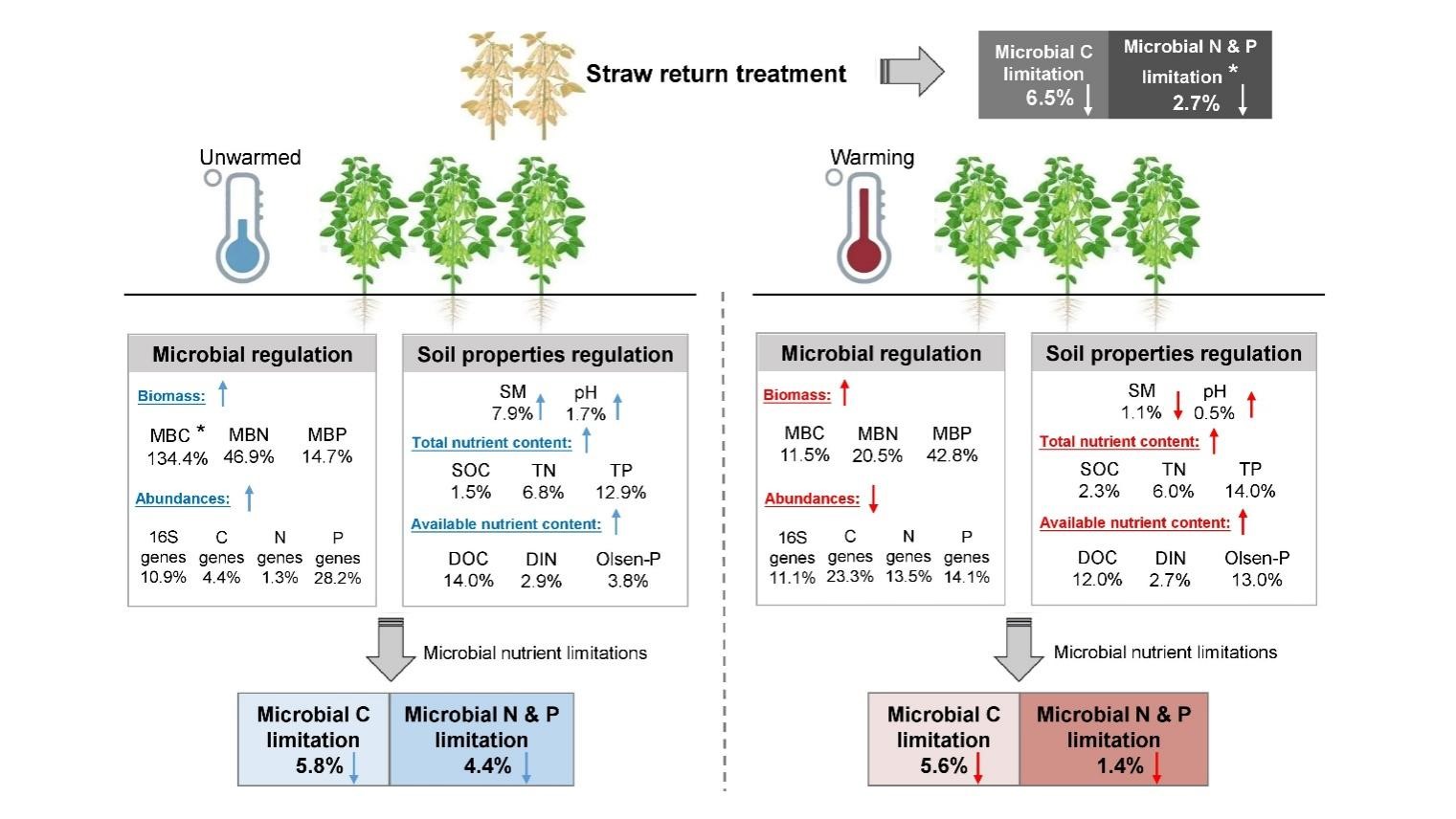 東北地理所在增溫和秸稈還田耦合對黑土農田土壤微生物養分限制的影響機制方面取得進展
