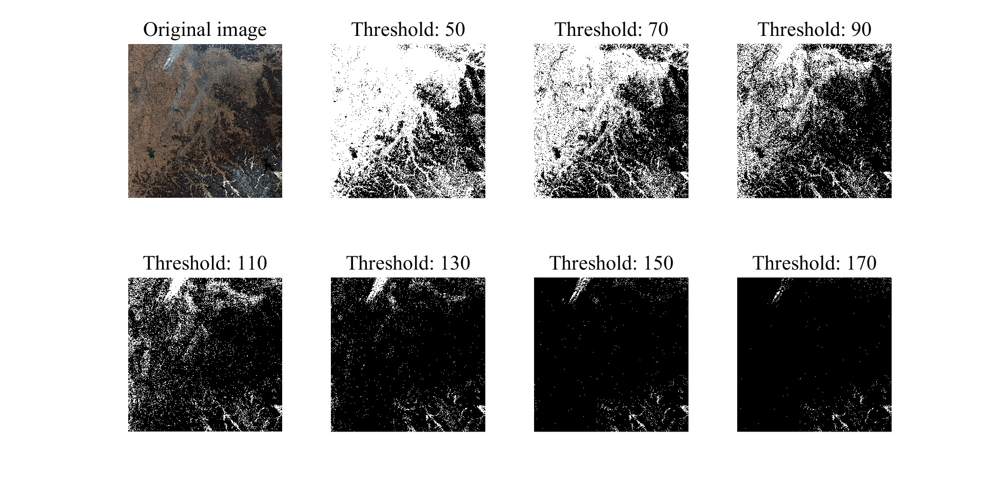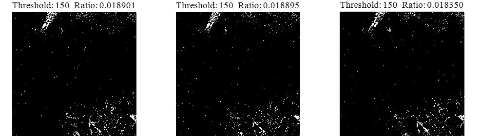 圖2 2020年11月11日的影像在不同閾值下的二值化分割結(jié)果