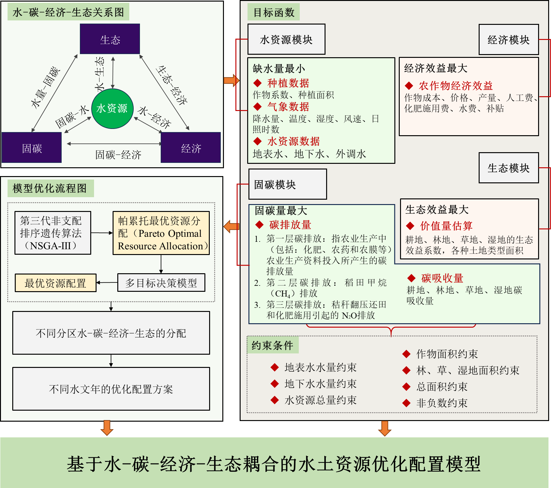 圖1 基于水-碳-經(jīng)濟-生態(tài)耦合的水土資源優(yōu)化配置模型