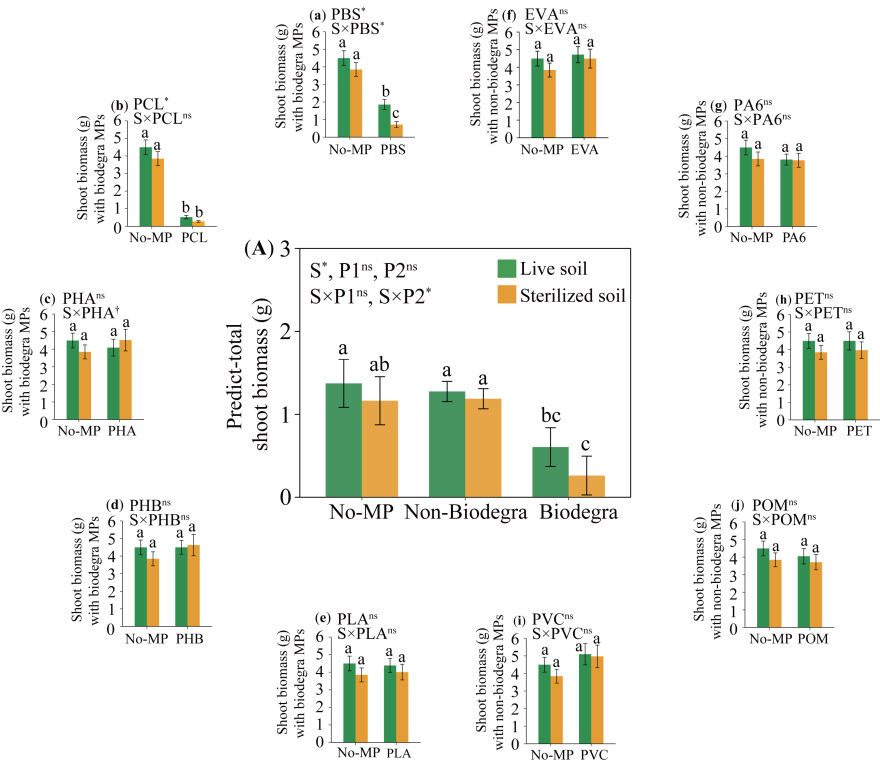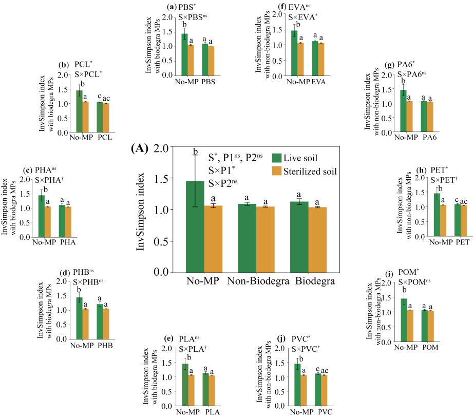 可生物降解塑料雖然被視為替代傳統(tǒng)塑料以緩解土壤塑料污染的綠色替代品,但由于它們可能比傳統(tǒng)塑料更快地分解成微塑料,從而對陸地生態(tài)系統(tǒng),特別是植物生態(tài)系統(tǒng)構(gòu)成額外的威脅。不僅如此,微塑料被認(rèn)為會(huì)破壞植物-土壤生物的相互作用,進(jìn)一步導(dǎo)致植物生長受到影響。然而,現(xiàn)有研究多集中在個(gè)體植物層面,關(guān)于微塑料對植物群落多樣性和生產(chǎn)力方面的潛在影響仍鮮有報(bào)道。因此,微塑料對植物群落造成的生態(tài)后果存在著極大的不確定性。