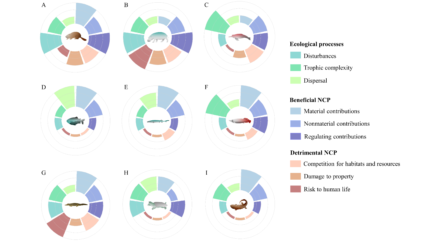 圖2 恢復(fù)本土大型動(dòng)物種群對(duì)淡水生態(tài)過程和自然對(duì)人類貢獻(xiàn)(NCP)的影響