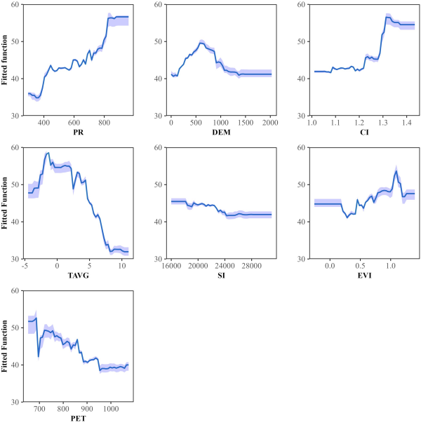 圖1東北地區(qū)關(guān)鍵環(huán)境因子對SOC儲量的非線性響應(yīng)特征
