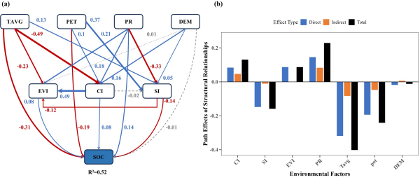 圖2東北地區(qū)關(guān)鍵環(huán)境因子驅(qū)動SOC變化的級聯(lián)路徑與調(diào)控網(wǎng)絡(luò)
