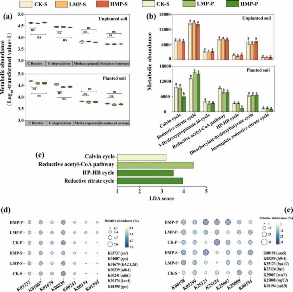 此外,研究人員比較了有無玉米種植條件下可降解聚乳酸微塑料(PLA MPs)對農田土壤生態過程的擾動效應。結果發現,PLA MPs顯著影響土壤碳氮養分供給格局、土壤團聚體組成及微生物功能過程,但其生態效應在不同種植條件下表現出明顯差異。在無植物條件下,PLA MPs整體上促進了土壤微生物碳氮代謝;而在玉米種植條件下,這種促進效應明顯減弱,部分指標甚至呈現相反變化。進一步分析表明,作物根際過程以及植物與微生物之間的養分競爭,是調控PLA MPs生態效應的重要機制。