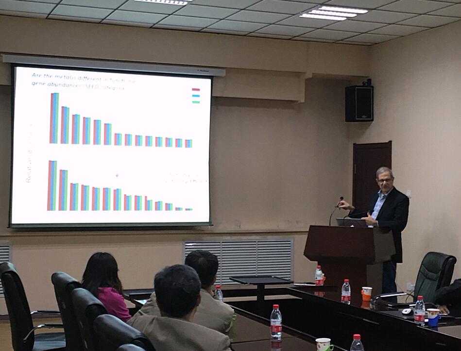 10月12日,James M.Tiedje做了題為“The Soil Microbiome of Biofuel Crops”的專題報告。正在我所訪問的美國土壤科學(xué)學(xué)會會刊編輯、美國加州大學(xué)戴維斯分校William Horwath教授和我所土壤微生物專家及相關(guān)科研人員、研究生30余人參會,并進(jìn)行了熱烈的討論。哈爾濱所區(qū)科研處負(fù)責(zé)人孫海霞主持會議。