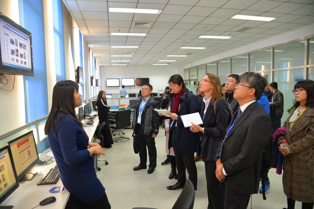 在研討會議討論交流結束后,全體參會人員前往國家減災中心進行了實地參觀考察活動。國家減災中心楊思全總工做了相關介紹,并組織了現場參觀活動。全體人員先后參觀了國家減災中心指揮大廳、災害衛星在軌實時監控系統,以及災害數據管理部、災害評估部、無人機監測部和災害遙感應用部等業務部門工作實況,并對有關災情速報、災害多媒體數據存檔管理、無人機技術參數、國際減災遙感監測等業務問題進行探討和交流。