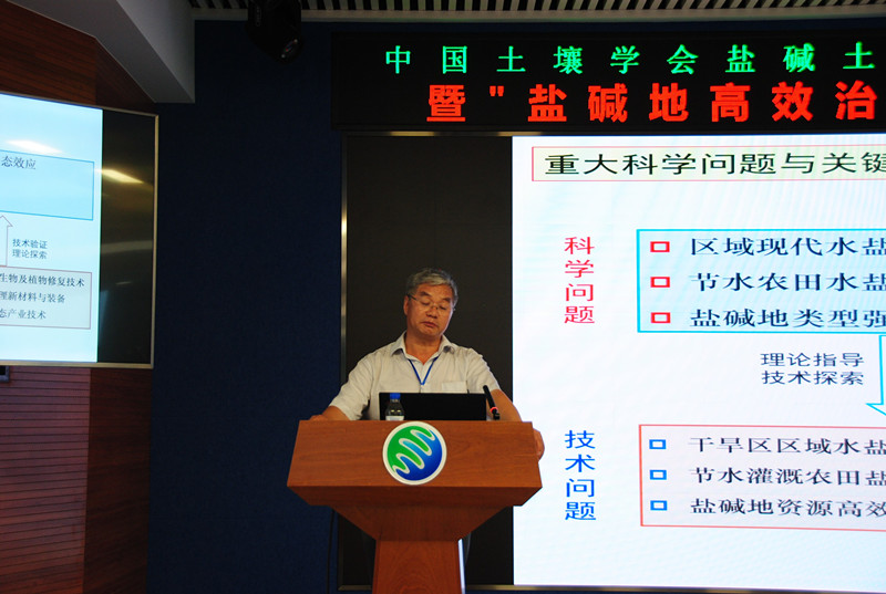 18日下午,來自國內的13位從事鹽堿地研究工作的知名專家做了特邀專題報告。中國科學院新疆生態與地理研究所田長彥研究員,中國科學院南京土壤研究所楊勁松研究員,中國科學院遺傳與發育生物學研究所劉小京研究員,中國科學院地理科學與資源研究所康躍虎研究員,清華大學能源與動力工程系王淑娟教授,西北工業大學應用化學系寧榮昌教授,中南大學薛生國教授,中國農業科學院農業資源與農業區劃研究所程憲國研究員、魯東大學資源與環境工程學院傅金民教授,以及中國科學院東北地理與農業生態研究所王志春研究員、趙凱研究員、田春杰研究員和梁正偉研究員等圍繞我國西北新疆鹽堿地、河套平原鹽堿地、濱海灘涂鹽堿地及中低產田,東北松嫩平原鹽堿地治理研究進展與系統解決方案,以及微波遙感、土壤微生物、生物刺激素等新方法、新技術、新產品在鹽堿地治理上的應用等分別做了專題學術報告。