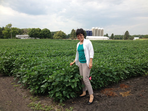 明尼蘇達州的氣候和所處的緯度與黑龍江的基本一致,土壤是黑土,大豆和玉米也是其主要的作物,大豆孢囊線蟲的生理小種也基本相似,所以王從麗研究員也借此會議之際,順訪了明尼蘇達州立大學的試驗站,在線蟲專家陳森玉教授的帶領下參觀了他們大豆孢囊線蟲長期試驗地和線蟲實驗室,進行了詳細的學術交流和商討了未來的合作內容,雙方都愿意通過資源數據共享來探討大豆孢囊線蟲的遺傳多樣性。