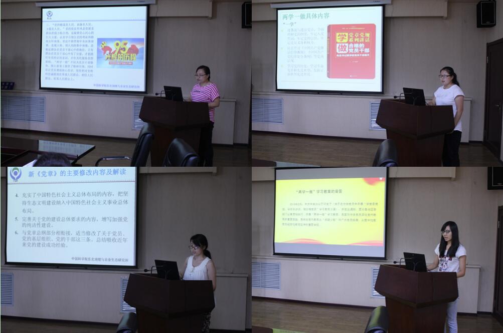 會(huì)上,行政機(jī)關(guān)黨支部趙春萍同志作了《積極參加“兩學(xué)一做”做合格黨員》;大豆黨支部翟紅同志作了《認(rèn)真學(xué)習(xí)黨章黨規(guī)、習(xí)總書(shū)記系列重要講話,增強(qiáng)黨性修養(yǎng)》,黑土黨支部嚴(yán)君同志作了《以黨章為鏡 錘煉黨性作風(fēng)——學(xué)習(xí) “兩學(xué)一做”心得體會(huì)》,研究生黨支部王亞英同志作了《“兩學(xué)一做”學(xué)習(xí)心得》,各支部同志結(jié)合近期的“兩學(xué)一做”學(xué)習(xí)教育暢談了自己學(xué)習(xí)體會(huì)。
