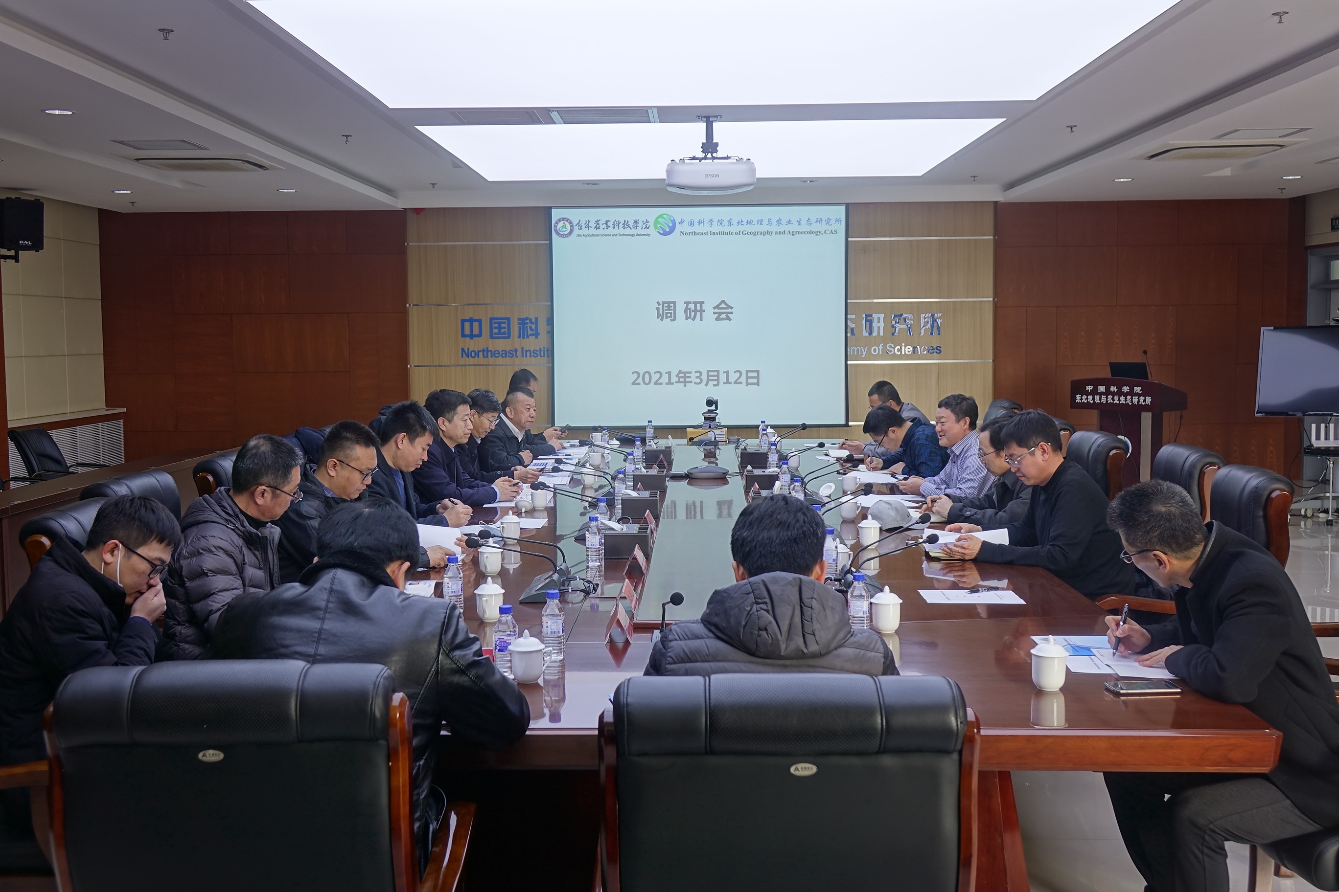 2021年3月12日,吉林農業科技學院校長謝景武、副校長李國江、吉林市科技局局長王德林等一行來東北地理所調研。