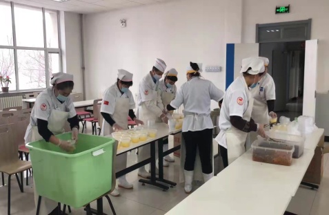 中午時(shí)分,用餐微信群里面發(fā)出用餐通知,物業(yè)人員按照統(tǒng)計(jì)人數(shù)把飯菜、水果送到研究生宿舍和流動(dòng)公寓宿舍。姜明和蘇陽(yáng)關(guān)切地詢問(wèn)飯菜是否可口、是否熱乎,要求一定要搞好食堂衛(wèi)生和保障食材來(lái)源安全,并設(shè)置 “臨時(shí)廚房”供簡(jiǎn)單加工食材使用。送餐完畢,姜明和蘇陽(yáng)來(lái)到研究所食堂,慰問(wèn)員工食堂,對(duì)工作人員的辛勤付出表示感謝。