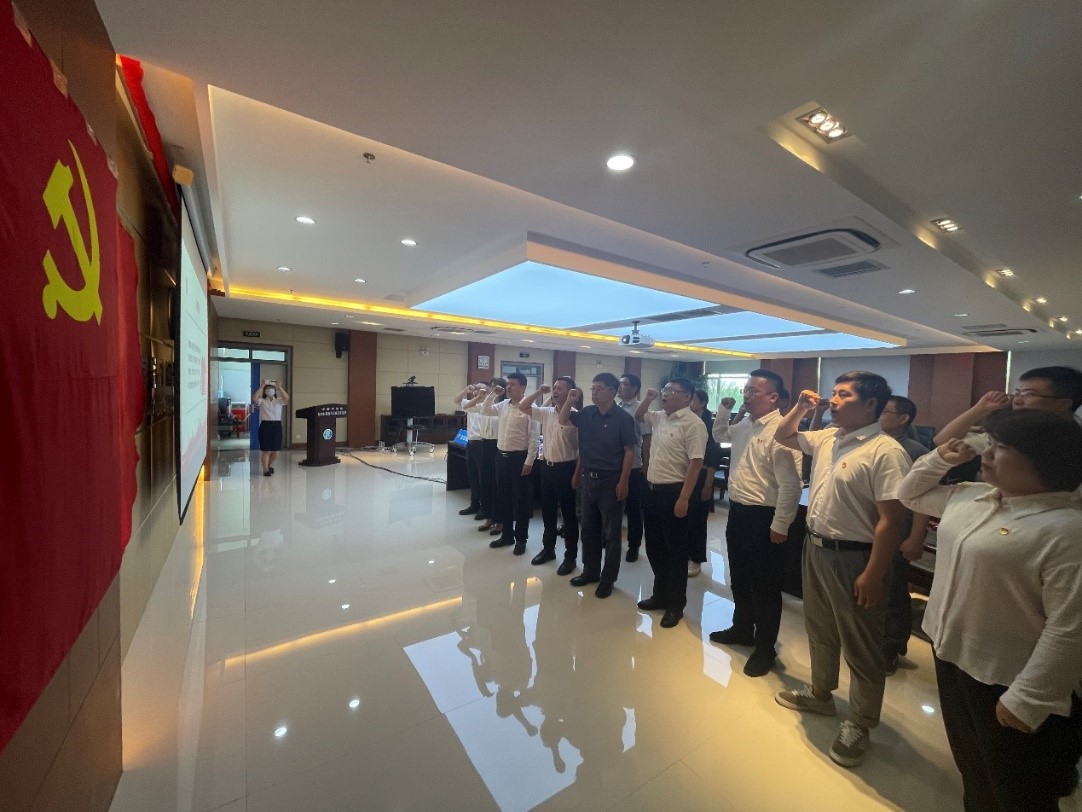 隨后,辦公室黨支部與吉林省委宣傳部外聯(lián)處、中新社吉林分社聯(lián)合黨支部全體黨員舉行七一宣誓儀式。所黨委書記蘇陽領(lǐng)誓。