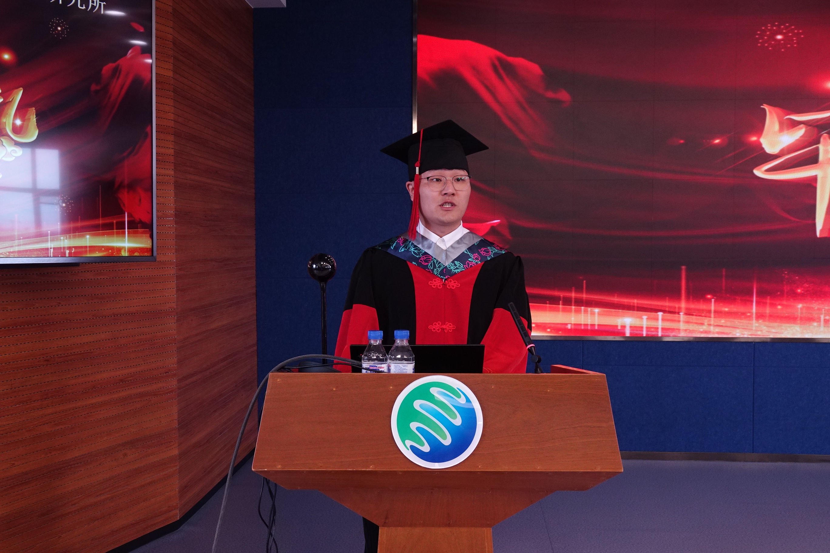 博士畢業生崔虎、碩士畢業生李紹陽代表全體博士和碩士畢業生發言,他們的發言回顧了入學時的欣喜、治學時的艱辛、迷茫時的求索、成果發表時的激動,表達了對母校的眷戀、對導師的感激。他們對未來滿懷憧憬,并勵志用青春和熱血報效祖國。他們以優異的成績畢業,為自己在東北地理所的求學生涯提交了圓滿的答卷。