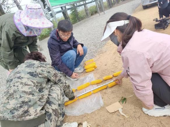 測產專家實地調查了曙光農場四分場、五分場和二分場核心試驗區,針對玉米長勢確定了具體的測產方案。子模式負責人王玲莉高級工程師、專家組成員和曙光農場技術人員在試驗和示范區對玉米株數、穗數、穗重等進行計數和稱量,現場脫粒,測定玉米水分含量,按照玉米國標14%標準水折算成畝產量。在記產區外,每個處理隨機取五點,采集了土壤和植物樣本,旨在通過室內分析土壤理化性質、作物養分吸收、肥料利用率等指標,解析養分轉化與利用機制,科學評價技術的效果。