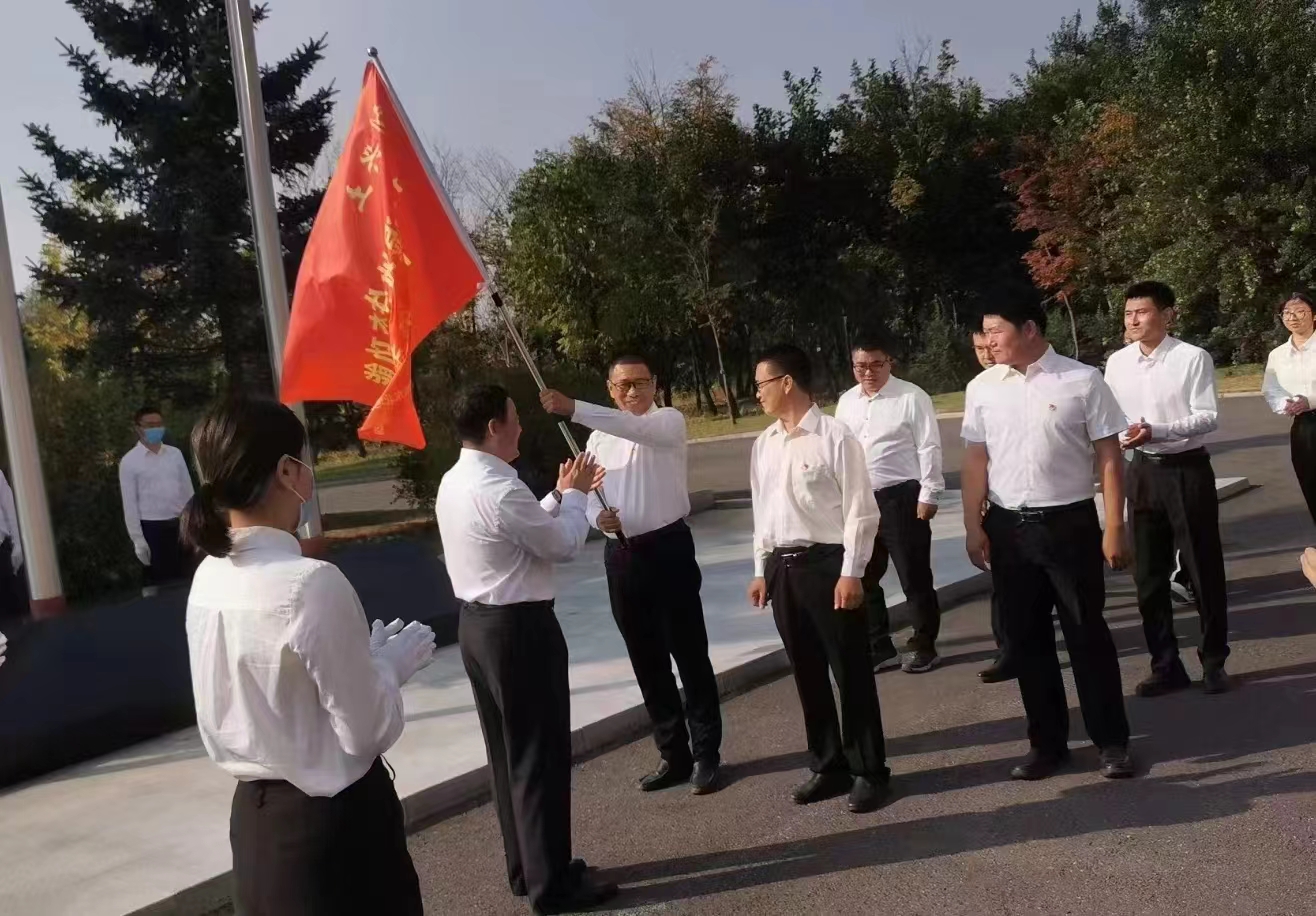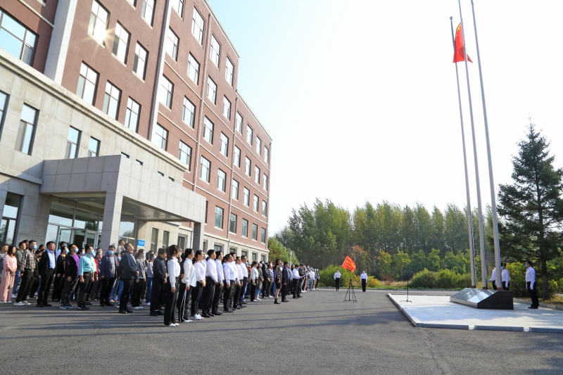 伴隨著莊嚴(yán)雄壯的國歌聲,鮮艷的五星紅旗冉冉升起,全體人員莊嚴(yán)肅立,齊唱國歌,行注目禮。