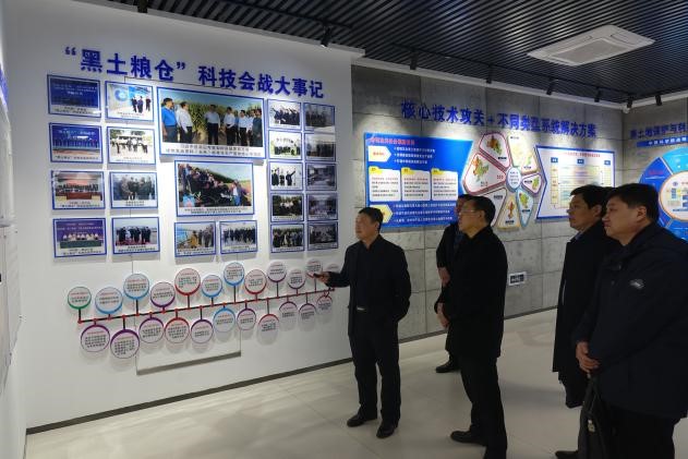 趙波一行首先參觀了“黑土糧倉”科技會戰(zhàn)指揮中心宣傳展示平臺,辦公室副主任殷麗婭對研究所歷史沿革、基本概況、科研項目、人才智庫、平臺建設(shè)、黨建創(chuàng)新等方面內(nèi)容進行了講解。隨后參觀了“黑土糧倉”指揮平臺,姜明介紹了科技會戰(zhàn)核心技術(shù)攻關(guān)和示范區(qū)工作進展情況。