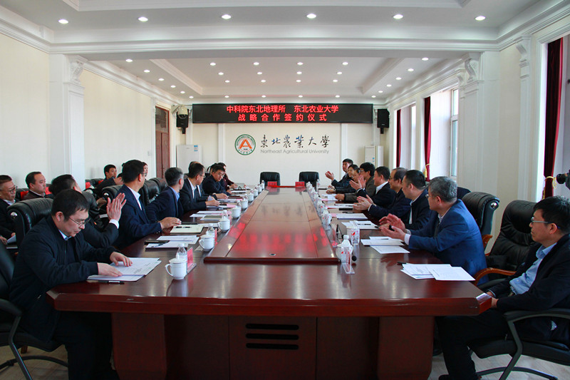 東北地理所人事教育處與東北農大研究生院,中科院黑土區農業生態重點實驗室與東北農大農學院、資源與環境學院,中科院大豆分子設計育種重點實驗室與東北農大農學院、生命學學院,中科院濕地生態與環境重點實驗室與東北農大資源與環境學院、水利與土木工程學院,東北區域發展研究中心、遙感與地理信息研究中心與東北農大公共管理與法學院分別簽訂合作協議。