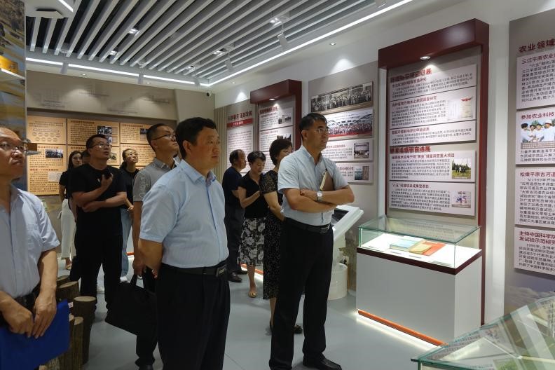 楊義一行首先參觀了“黑土糧倉(cāng)”科技會(huì)戰(zhàn)指揮中心宣傳展示平臺(tái),對(duì)研究所歷史沿革、基本概況、科研項(xiàng)目、人才智庫(kù)、平臺(tái)建設(shè)等方面內(nèi)容進(jìn)行了全面了解。