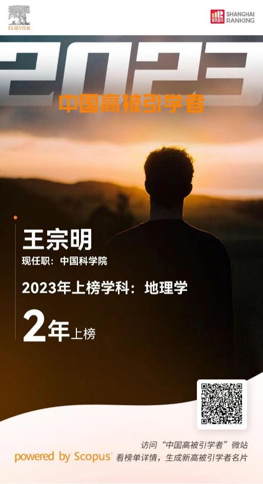 王宗明研究員連續(xù)兩年入選Elsevier“中國高被引學(xué)者”榜單