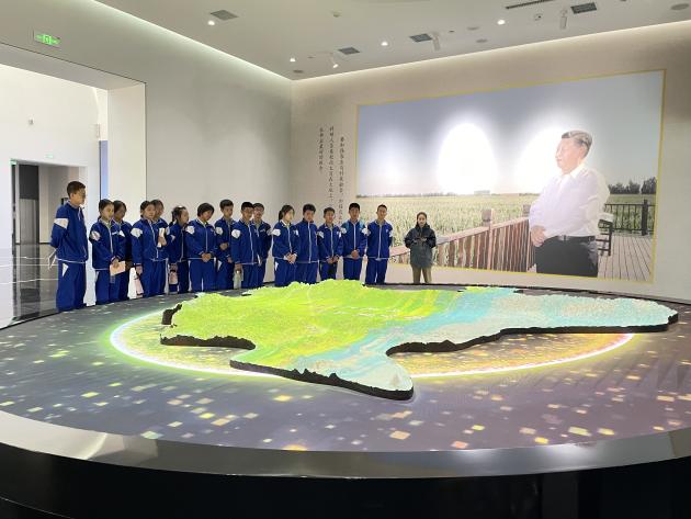 ????英才學校師生們在志愿者的引導和講解下,參觀了東北黑土地保護與利用創新研究院,認識了東北黑土區不同土壤類型分布以及不同土壤類型特性。在智慧農場實驗室,工作人員現場進行了精量滴灌等操作演示,學生們對現代化智慧農業產生了濃厚興趣,不斷進行觀察和記錄。在數字農業展廳,參觀了鴻鵠系列無人駕駛電動拖拉機、植保無人機、數字農業衛星等智能農業機械模型。