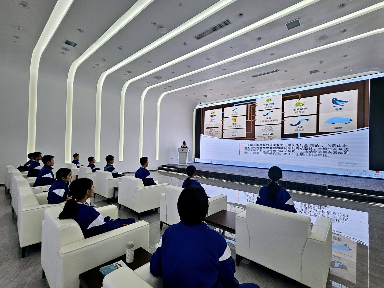 ????碩士研究生李春波做了以“土壤動物多樣性”為主題的科普講座,風趣地講述了小型、中型、大型土壤動物分類以及對土壤的作用。期間進行了土壤動物知識有獎問答,學生們踴躍參加,現場氣氛熱烈,起到了宣傳土壤動物知識,寓教于樂的目的。
