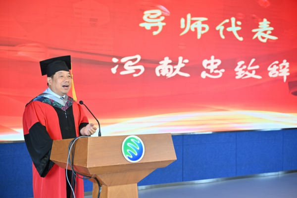 博士生導(dǎo)師馮獻(xiàn)忠研究員代表研究生導(dǎo)師在畢業(yè)典禮上發(fā)言。他欣慰于畢業(yè)生們的成長(zhǎng),他寄語(yǔ)同學(xué)們,要腳踏大地、仰望星空,要滿懷信仰、志存高遠(yuǎn),要在屬于自己的蒼穹下,書寫出劃破天際的璀璨人生!
