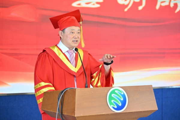 姜明在畢業(yè)典禮上致辭。他向圓滿完成學(xué)業(yè)的同學(xué)們表示誠(chéng)摯的祝賀,向老師和家長(zhǎng)朋友們致以衷心的感謝,并以“厚植黑土擔(dān)使命 賡續(xù)創(chuàng)新譜新篇”為主題,給同學(xué)們上了在東北地理所的最后一堂課。他希望畢業(yè)生要弘揚(yáng)“黑土精神”,永葆艱苦奮斗本色,要保持“千磨萬(wàn)擊還堅(jiān)勁”的定力,傳承“板凳甘坐十年冷”的堅(jiān)守,希望畢業(yè)生像我們培育的東生大豆一樣,把根深深扎進(jìn)泥土,把枝葉高高伸向藍(lán)天;以“功成不必在我”的精神境界和“功成必定有我”的歷史擔(dān)當(dāng),在實(shí)現(xiàn)高水平科技自立自強(qiáng)的偉大實(shí)踐中貢獻(xiàn)青春力量。
